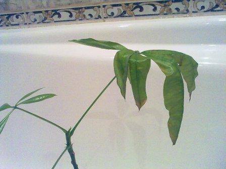 Добрый вечер всем. почитала форум, своей проблемы не нашла. помогите пжл. моей пахире внезапно поплохело. буквально за несколько дней листья на двух из трех имеющихся стрел зачахли. (см.фото)