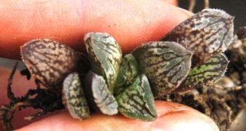 plant_collection написал: Svetlana elf , Kto7 , не совсем уж монстрозная, но очень странная штука появилась у меня недавно. Если я все правильно понимаю, это хавронь пумила (или нечто с ее участием) у которой верхние листья срослись куполом над точкой роста. В результате растение развивается, как "пень" - видно несколько боковых отростков. Я зову ее "монстра", но это сугубо домашнее прозвище:) ничего пока не отделяю, наблюдаю что дальше будет. Вот интересно, это мутация или какие-то погрешности агротехники к такому результату привели?