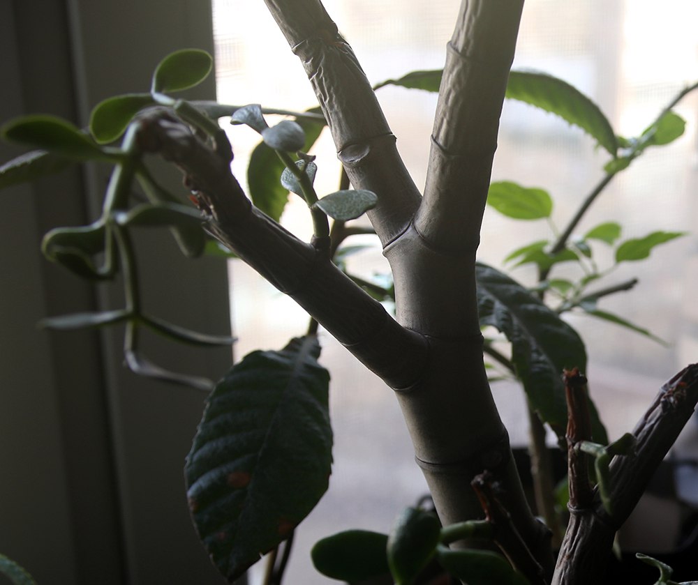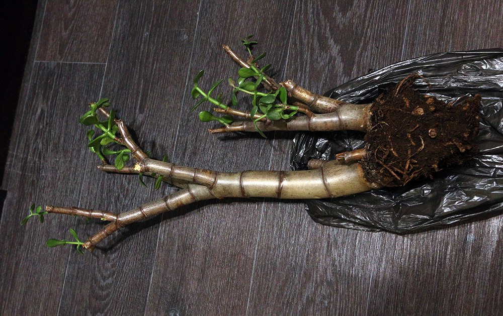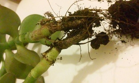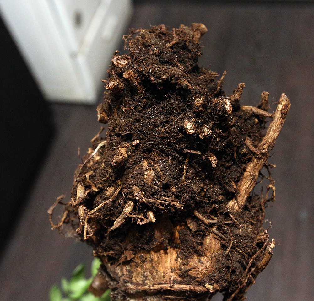 Проверил корни - снизу гниет ствол. Все, что ниже зеленой части ствола, - мягкое.