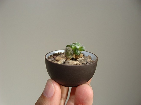 А вот мои (полутора)годовалые (Anacampseros namaquensis), уже "минибонсаистые":