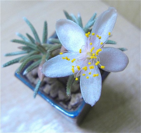 Всю прошлую зиму она была на холодной зимовке вместе с кактусами, в этом году я оставила ее под лампами...посмотрим, повлияет ли это как то на цветение - будет оно обильнее или же, наоборот, хуже?...