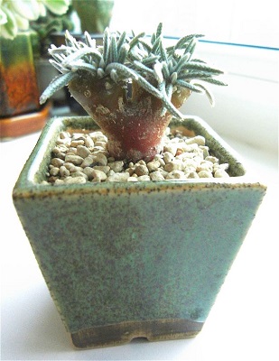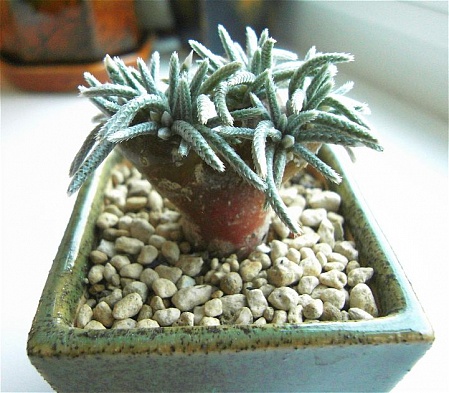 Алина R, спасибо. Не знаю как по фото кажется, но растение крохотное. Сторона горшка 4 см, "каудекс" - 1.5 см. Если учесть, что это сеянец 2012 года, я даже думать боюсь, сколько ждать, когда размер будет хотя бы с мелкую редиску