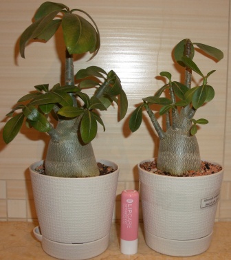 И у нас можно вырастить хорошие адениумы. У меня, например, вот такие Арабикумы растут без подсветки, им еще нет и 2-х лет. Но, конечно, хочется цветения, а это быстрее всего на прививках. Я начала с семян, потом купила сеянцы, потом привитые..... Главное начать! )))