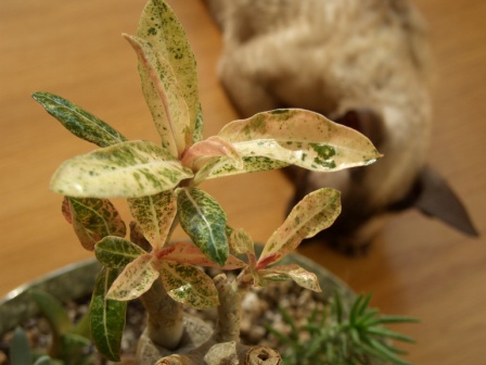 Этот Адениум (сорт не знаю) после координальной обрезки приятно порадовал - выдал такие красивые листочки, хорош и без цветов, хотя прошлым летом цвел одним цветочком.