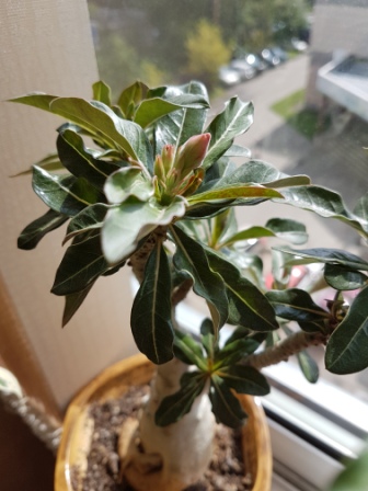 Добрый день! Нужна помощь советом с адениумом. Купила пару лет назад сеянец и он у меня беспроблемно рос, а этой зимой стали сохнуть и облетать листочки. Я решила, что это тот самый период покоя, о котором читала и ничего не предпринимала. На днях заметила на верхушке то ли бутоны, то ли новые листочки. То есть, это не покой, тогда почему сохнет? А если это бутоны, то что мне делать, чтобы поддержать растение?
