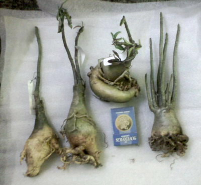 Вот хвастанусь . Дотелепались мои бедные. 1 - МОО, 2 - Гарри Поттер (с двойной прививкой), 3 - KSM (тож с двойной прививкой и кучей рожек на них), 4 - Арабикум (очень много веток ). [FONT=Times](фото с мобильника, не судите строго)[/FONT] . Адешки все чистенькие, без следов гнили. Арабикум с остатками почвы, остальных как будто помыли. Упакованы были хорошо, с утеплителем, но всё равно на ощупь они холодные, очень. Счас отогреваются. Вопрос: мыть и травить хадов сегодня или пусть согреются? [FONT=Times]Хойки - чудо. Ариадна, просто красавица . Все растишки, Адешки в том числе, дошли целыми и на вид здоровыми.[/FONT]