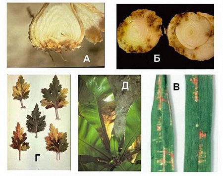 Ну вот, все с красотой, а я с бедой . Подскажите, кто нибудь слышал (видел), поражаются ли адениумы нематодами? У меня один 1,5-месячный сеянец стал выдавать пестрые листики, вначале были мелкие редкие неяркие пятнышки на первой паре листьев - я и не обратила особого внимания, а на второй паре сильно заметно, особенно один листик: мелкий, почти весь поражен... Прочитала и про вирусы, и про вредителей, нашла самое похожее - случай "В" на картинке про нематод... Чей там листик, не знаю, но у меня только геометрия рисунка другая, тоже с четкими границами по жилкам, на просвет розоватенькая нижняя сторона листа просвечивает, а так - истонченные "пергаментные" обесцвеченные участки. То есть зеленого там участки - меньше, чем пораженного . Вот сфотографировать сейчас нечем, к сожалению. Но хоть теоретически - могут быть нематоды, или искать еще какую причину?
