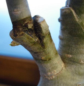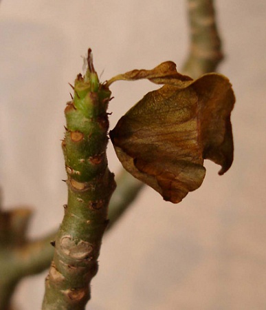 ) до-о-олго не хотел просыпаться. У него две ветки в один срез привито. Так вот одна из них проснулась где-то в январе, щас растет вовсю, а вторая стоит как отморозок. Недавно, смотрю - а она пустила несколько листиков, но не с макушки веточки, а у основания. Так прикольно! Теперь кустиком растет!