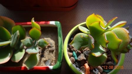 Нет, их всего около 30 видов, сортов и форм денежных деревьев TanyaKa, первая - Триколор, только теряет вариегатность из-за перекорма органикой. Если хотите сохранить, срочно в грунт намного больше песка, чем торфа. И поберегите от яркого солнца. А то получите зелёную обликву, которая не так ценна, как вариегатный сорт. Вторая толстянка - Крассула древовидная подвид ундулатифолия. Больше похожа на 'Blue Ripples' (так называют американцы) или 'Blue Waves' (так называют французы), чем на 'Blue Bird'. Поливайте мягкой водой, тогда больше будет понятно, как называть. У 'Blue Ripples' слегка овальные листья с волнистыми краями, у 'Blue Bird' листья заострённые. Когда поливают жёсткой водой, выглядят практически одинаково. KaTanya, это - 'Hummel's Ghost' или вариегатный 'Hummel's Sunset'. Это же растение опознавали в Листья овата, а не обликва, как у Соланы. Этот сорт (фото 2) ведёт себя, как все сорта типа 'Hummel's' : при недостатке органического азота при пониженных температурах окрашивается в яркий розовый цвет. Легко выдерживает до +4 даже с влажным грунтом при поливе подкисленной водой. Только не надо слишком морить голодом без азота. Листья будут деформированными, как будто изъеденные. Для сравнения обычная Крассула 'Hummel's Sunset' (фото 1), этой весной в грунт добавила слишком много компоста, в итоге слишком крупные листья и розовый с жёлтым пигменты не так ярко выражены в тех же условиях