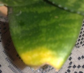 Добрый день! У меня тоже есть сансевьерия, только обычная, темно-зеленая. Досталась мне от знакомой, у которой было много росточков. Я ее сразу пересадила в чють больший горшок, и сначала поставила на северное окно, а потом под самую лампу дневного света. И поливала когда о ней вспомню. А так ка стояла она очень близко к лампе, а окружали ее растения по больше, то доставала я ее для полива не часто. И вот буквально вчера решила полить. Земля оказалась сильно сухая. Я бы даже сказала немного пересушеная Но на листьях появились желтые пятна и кончики покоричневели. Что делать? Посоветуйте пожалуйста.