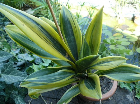 Спасибо девочки!Это сансевиерия Голд Флейм,все лето сансевиерия на улице,под солнцем и дождями,может и окрас поэтому яркий,не знаю)