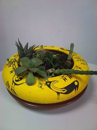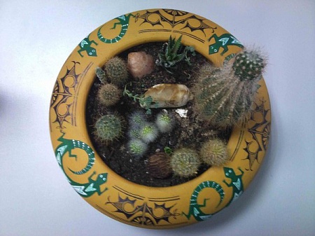И еще один садик в плошке. Здесь каланхое превратился в упитанную лошадь и горшок несколько раз падал на ту сторону под тяжестью. Убирать пока не стала его, просто вырезала толстые ветки, стало немного лучше, на мой взгляд.