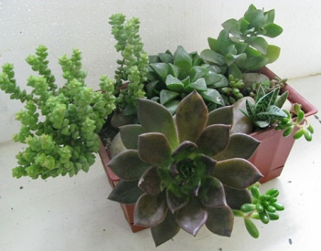Зимой стояли вместе с пеларгониями у самого стекла, и от комнаты тоже стеклом отгораживала, температура колебалась около +10 градусов, поэтому за зиму ничего не вытянулось, спали. А летом я делала полки на окне с уличной стороны ( юго-восток), солнышко и свежий воздух сделали свое дело.
