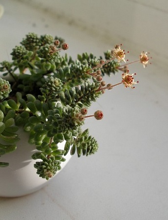 Моя крассула 'Morgan's Beauty' распустилась после Нового Года, как раз в самые лютые морозы, причем она сейчас стоит на зимовке. Цветы, хоть и мелкие, но многочисленные и с приятным запахом.