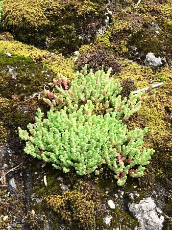 Седум, можно сказать что в диких условиях. Фото недельной давности. Обнаружил его много лет назад на бетонном основании моста, он успешно проживает на каких-то остатках песка и придорожной грязи. За много лет образовал целые полянки, наш климат ему вполне по душе. Может туда молодило подсадить? Или подсеять...