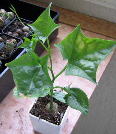 Как раз первомайский привет мне пришёл с Тюмени. Геррардантус макрохизус- похоже еще и цвесть хочет. Я сразу влюбилась в эту попу с кленовыми листочками.