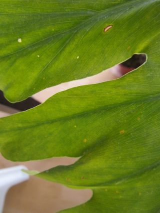 Залива не может быть. Растение изначально было получено в горшке с очень сухой землёй. Когда упаковку открыла, увидела только точки на листьях, пост 390. Я его пересадила и умеренно полила всего лиш 1раз. (прошла неделя, как растение приехало). Пост 392 - фото сегодня. Продавец точкам не придаёт значения и уверяет, что всё ок и новые листья будут целыми, но я так не считаю. Жалко растюху, попробую вылечить, вопрос Чем?