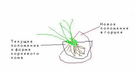 DeJaVu, а Вы его посадите так, чтобы корневой ком оказался под углом, а стебли встали вертикально. Если ком не мокрый, можно растрепать его с тех сторон, которые не влезут в горшок. Щас попробую наскоро накорябать, что имел в виду...