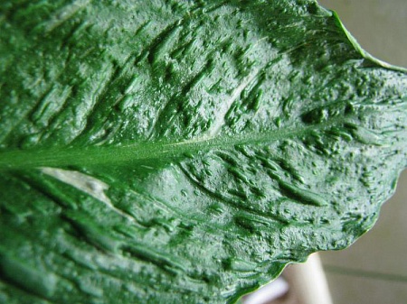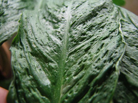 Andrew Geser, шероховатость на листьях есть, но не так выражена, как на вашем. С возрастом она у них более заметна стала. Сначала листья были более гладкие. Моим года три, наверное чуть больше, я их брала делёнками. Но а что по поводу окраса листьев, я так понимаю Домино и Пикассо этим отличаются? И если листья у моих не как "после бомбёжки", то кто у меня? Вариегатность, действительно то сильнее, то меньше. Всё время стояли на северном окне, первый этаж, очень темно. Последние месяцев 7 на южном, 13 этаж, ничто не затеняет свет, домА далеко. Похоже им нравится, летом не знаю, как будет. Но всё-таки, как зовут моих ? Вот эта белая половина листа не означает, что он Пикассо? И у деток лист более корявый, чем у других и тоже полоски на листьях, а не только штрихи по листу. А какой возраст у вашего Спатифиллума?