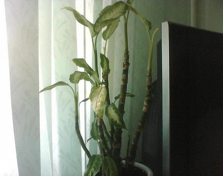 Куст диффенбахии у меня уже 2-а года, проблем у меня не было с ним. Куст был пышный, густой и очень быстро рос. В последние 2-а месяца он изменился, листья, как внизу, так и наверху начали желтеть особенно большие верхние листья. Доходит до того что он у меня весь облысеет. За землей я слежу, чтоб была постоянно влажная в меру, опрыскиваю 2-а раза в день отстоянной водой , раньше опрыскивала препаратом (доктор Фоли) для листовой подкормки. Посоветуйте пожалуйста мне, как быть?