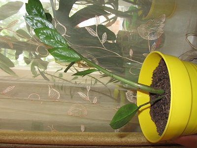 Мы на 2 недели уезжали на море, свекру оставила свои цветочки и 2 вазона замиков сказала не поливать (чтобы не забыл - поставила ему туда записки). По приезду меня ждала замечательная новость в одном вазоне вырос и раскрылся листик о котором я знала, а второй порадовал 2мя выросшими и почти раскрывшимися листочками))))