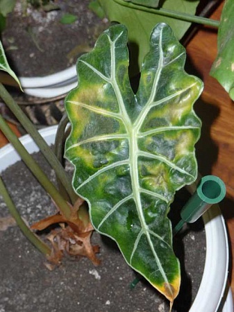помогите пожалуйста понять что с алоказией! на листочках появляются желтые пятна ... уже 4-5 листиков потеряла... думала перелив, возможно, но уже давно почва вроде в норме и вот снова пятна появились! а ещё на многих цветах на почве появляется что-то вроде белой лёгкой плесени...