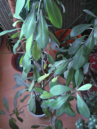 Я тоже 3 ноября подобрала синадениум - старый, толстый. Он был весь в длинных извитых голых ветках с чубчиками на концах. Обрезала практически все. Оставила два самых коротких чубчика. Сейчас уже пушистый. У него из всех пор ростки полезли. И уже теряет нижние листья. Обжора он. И выпивоха отменный.