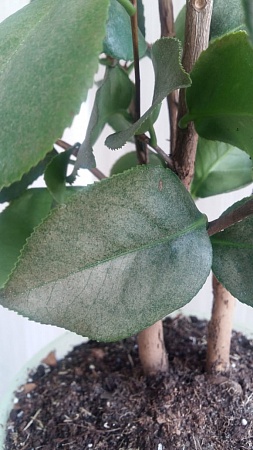 Купила год назад камелию со странным налетом на нижних листьях. Подумала, что это пыль въелась, т.к. смыть было не возможно. Год с камелией все было хорошо, зимой цвела. А вот этим летом "пыль" появилась и на молодых листьях. А самое главное, заметила такой же налёт на соседней камелии. Что это может быть и как с этим бороться?