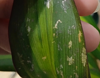 Здравствуйте. Купила кордилину. Дома сразу увидела, что на обратной стороне листьев очень много сухих светлых пятен 1-2мм и менее. На всех листьях. С лицевой стороны- местами насквозь пятна сухие- светлые и темные- коричневатые. Уголки на листьях подсохшие.