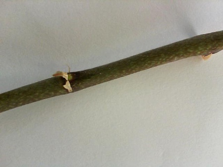 Опробовала на брунфельсии манака (Brunfelsia manaca), приобретенной на форуме. Куст где-то трехлетний, с одревесневшим до высоты примерно в 1,5 м стволом, выше делится на 4 ветки. Лысая часть ствола как-то сиротливо смотрелась, как вот на старой сирени бывает... Паста была нанесена в трех местах, где были хоть какие-то шероховатости. И вот три новых вполне бодрых почки на 2-3 приличных листа, гораздо веселее Спасибо, Елена