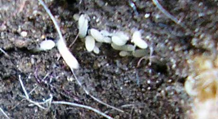 нет, механически нет, они слишком маленкии что бы собирать.. я тоже вся в доогадках. Там еще на поверхность у фикуса был небольшой корень, вот около него они тоже группировались, потом поднимаю корень, а он отгрыган как будто бы. Так страшно, если честно! Я этот фикус очень люблю... И еще они в движении, некоторые очень активные, некоторые не очень, но картина постоянно меняется. Похоже я как обнаружила (может у них првда этот кокун лопнул только) их было много-много. Начала фоткать, фото не получались, пока меняла режимы, картина изменилась и часть улезли в землю, при чем в щели, которые раньше я не наблюдала.
