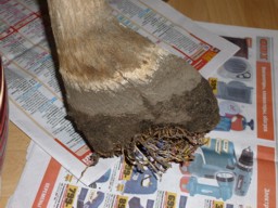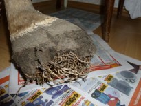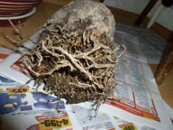 Всем доброго времени суток. Была в гостях у подруги и увидела у нее помирающую нолину. Каудекс сантиетров 7 в диаметре и весь сморщеный, короткий стволик, из котоого торчат 8 коротких листиков. Я ее, конечно же, конфисковала для реанимации. Принесла домой и обнаружила следующее. Корни все сухие, лишь один 2х миллиметровый корешочек жив. Мало того, я просто ужаснулась, внутри розетки колонии червеца, просто вся воронка забита ватой и насекомыми. В общем, начинать войну с червецом я не стала, просто отрезала макушку, срез зеленый и влажный, присыпала углем. Сморщеную попу с одним маленьким корешочком поставила в раствор корневина. Собственно, вопрос. Как долго держать этот обрубок в растворе? И есть ли шансы у нолины вырастить корни без листьев или, наоборот, листья без корней? Будет ли пациент жить?