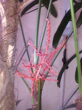 Прошлой зимой растень порадовала цветами. Не скажу, что очень красиво (Хамедорея у меня цвела каждый год и гораздо эффектнее) , но удивил сам факт - я как-то цветов не ждала от Раписа.