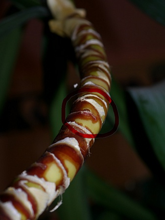 Они самые. При переукоренении целесообразно оставлять ствол покороче, чтобы ему было легче толстеть. Если оставить старый длинный ствол, он будет развиваться только в верхней части, и все растение будет балансировать на тонком и кривом основании.