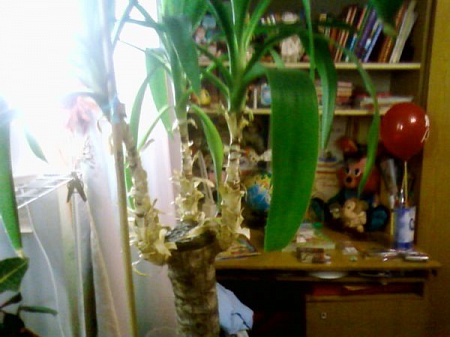 С юккой у меня такая история вышла. Я её купила года четыре назад , она прекрасно росла .Прошлым летом у неё пропал один пучок , а было всего два. Один остался и продолжает рости , постепенно она выросла довольно большая. Теперь передо мной встал такой вопрос, оставить всё как есть , или обрезать верхушку укоренить , а из ствола пусть растут новые побеги. Что посоветуете? Это само растение, ствол раздвоился, часть ствола где была отмёршая почка , тоже отмёр, теперь так выглядит.