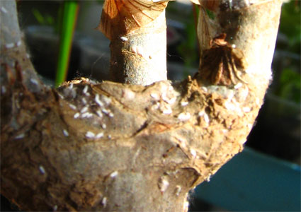 Лада Сайганова, кроме червеца, на растении еще и щитовка (верхнее фото - основание левого листа явно видно минимум три экземпляра).