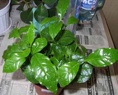 В общем так. Купила семена "Кофе арабика". БКак сказала продавщица, семена получили вчера (т.е. самые свежие). Купила сразу 5 упаковок (наслышана о долгом их прорастании). Посадила часть под плёнку на гидропонику и поставила в темноту. Затем уверенно о них забыла ... ----- Другую часть (примерно 5 штучек) посадила обычным методом. Семена через неделю частично позеленели и немного почернел другой кончик. Ещё через неделю семена загнили. Перед посадкой - не обрабатывала. ----- Всходы появились через месяц. Точнее 37 дней. Из тех, что были в темноте. И сразу почти все и дружно. Стебли естесственно от темноты стали длинными. Сейчас в горшочке 16 штук!!! Сегодня попробую произвести пересадку. В горшок на 1,5 литра высажу 4-5 растения, самых крепких. Остальные немного разряжу и оставлю в старой кадке. Может кому-то и отдам часть... (Есть тут Ростовчане?). Пока незнаю, получится или нет ... Технологию их пересадки я не знаю. Корни тревожить или нет? Каким образом происходит их пересадка? Подскажите! Землю уже приготовила. Цветочная рН 5,5-6,5, N-300-550, K-300-550, фосфора не помню. Растение очень требовательно к азоту. ---- Задавайте вопросы ...