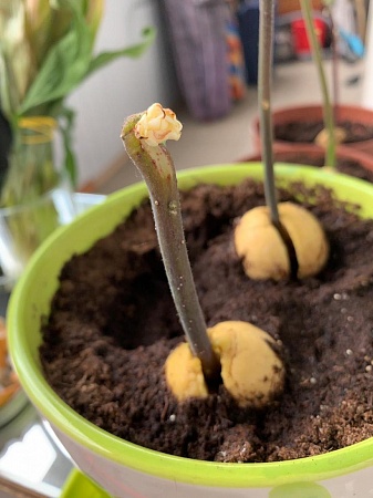 В гастрономическом плане я не поклонник этого заморского фрукта (или овоща?). Поэтому плод сей в моем доме случился только однажды, да и то случайно года два тому назад. Однако от проращивания косточки величиной почти с куриное яйцо отказаться духу не хватило.