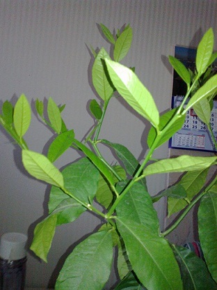 Здравствуйте! У меня на работе вырос мандарин из косточки, ему почти 1,5 года. Я его прищипнула прошлым летом,он дал две боковые веточки. Этой весной я эти боковые веточки тоже прищипнула и пошли боковые веточки. Но дело не в этом, а в том, что с одной стороны листики без крылаток (как у лимона), а с другой - с крылатками (как у мандарина). Как это может быть?