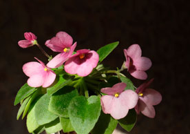 ЛЕ -Шелковые кружева. Должной по сорту пестролистности у меня не получилось, но цветочки очень живописные, глубокого вишневого оттенка, цветение долгое, цветоносы не ложатся на розетку