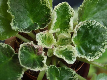 Мои фиалки к цветению подходят в 9см горшках, потому что никак рано зацветать не хотят и листвы целая куча и далеко не ювенильная. Т.е. вполне уже взрослые, сформировавшиеся розетки. И первое цветение у них обычно уже вовсю показывает на что способен сорт. Вот поэтому Ma"s Frog Land и не впечатлил. Но посмотрим, что дальше будет. А из мини у меня только Ness Crinkle Blue, да и она при приобретении сидела в 9-ке. Теперь пытаюсь из неё сделать хотя бы полумини - пересадила с полной заменой земли в 6,5.
