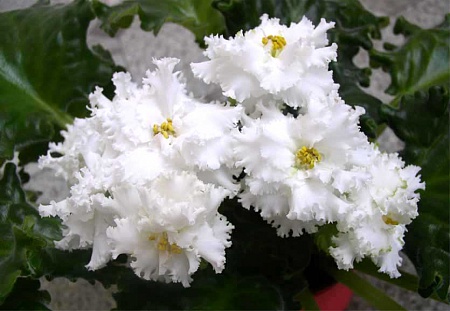 Мало того,что свадьба,так она еще маньяк всего белого и снежного.(от украшений до одежды и зимой, и летом),потому фиалочные цветочки должны быть без примеси каких-либо тонов и случайно не стать розовыми (этот цвет она не переносит).Каемочки, рюшечки,резные и пестролистные листы допускаются.От меня требования простые:живучая,т.к.у нее это первый цветочек,не считая алоэ),а у меня 105 мученица ;)Можно бабушкин сорт или ретро, я их всех