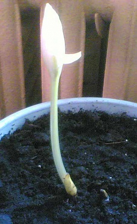 Недавно я клубнелуковицу купил. Это растение также интересно своей биологией. Вначале прорастает цветонос, а затем только листья. Кстати, когда появился цветонос, растение максимально накапливает колхамин и колхицин в клубнелуковице. Это период заготовки луковиц. Весной. Но у меня цветонос появился осенью. Думаю, что этот казус исправится к следующему году вегетации. О подробной технологии мутации в растениях соком колхикума опубликую в очередной теме