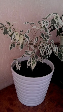 Добрый день! Не подскажете, какой именно фикус Бенджамина я приобрела? Темный цвет на листьях - темный холодный зеленый, более светлый - холодный серо-зеленый, почти чистый холодный серый, новые листья молочно-желтоватые, потом светлый цвет меняется на почти белый. Зеленые фрагменты на новых листьях ярко-зеленые, такого сочного цвета молодой зелени, потом становятся холодного темно-зеленого или бледно-серого оттенка. Высота от поверхности земли около 35 см., длина листочков в среднем 4-6 см, ширина 2-3 см. Это Старлайт, Де Гантель, кто-то еще?