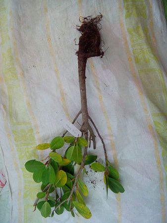 Ма-Шунь, я бы посадила его в тесный, очень тесный горшочек, хорошо пролила и поставила в теплое и светлое место. Температура не должна падать ниже 20 градусов. Никаких проветриваний или сквозняков, избави Боже! Листья должен терять, они и на фото уже желтеющие, и за пересадку заплатить должны. Очень тщательно надо следить за влажностью кома. Не пересушивать и не заливать. Маленький горшок очень легко как залить, так и засушить. Нужно повышенное внимание. Остальное терпение. Первое, чего надо ждать - это подсыхания земляного кома. Если земля сохнет, значит воду кто-то пьет, следовательно заработали корни. Второе - начало вегетации. Веточки должны пойти в рост, т.е. должны проснуться верхушечные почки. И снова терпение...: