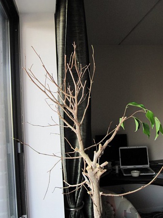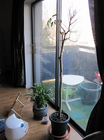 Войтешка, во время пересадки удалила почти весь субстрат, насколько это было возможно. Немного, конечно, осталось, потому что боялась корни повредить, уж больно сильно они его переплели! Не могу сказать, что на пересадку фикус как-то плохо отреагировал, листики молодые расли по всему растению, правда, старые (большие) немного и попадали... Кстати, после пересадки (где-то в июле) сразу был поставлен вот в это место, где стоит сейчас.