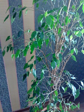 Добрый день, дорогие форумчане! Вот такая проблема у меня с Фикусом Бенжамина. Моя знакомая собираясь уезжать подарила мне много цветов, среди них был и Фикус Б. Но дело в том, что в свою очередь она его привезла от мамы своей, то есть цветок постоянно перемещали! Она мне дала и сказала, что фикус болен, на нём щитовка. Если сможешь вылечить, то будет хорошо! Дала мне рецепт лекарства, которым я и стала опрыскивать растение. Ухаживаю я за ним по моим меркам правильно, я его опрыскиваю каждый день отстоявшейся водой, от щитовки он у меня уже вылечился! Поливаю его, не пересушивая ком, но и не заливая. Но вдруг он стал терять листья! Листья желтеют, а теперь уже и сохнут на концах и потом опадают. Я даже его пересадила...Не знаю, что с ним делать Может кто-то сталкивался с такой проблемой? Для наглядности фото: