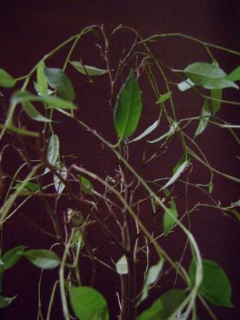 Добрый день! Подскажите, что это может быть? Надеюсь в правильную темку уже пишу. Итак, дам небольшую характеристику своему фикусу. Фикус бенджамин (Регина), куплен полторы недели назад. Не пересажен (про пересадку читала, всё поняла, выжидаю две недели с покупки, не хочется его тормошить, пока проходит адаптацию). Ниразу не поливала, так как земля еще влажная (полагаю, что в магазине его залили). Утром и вечером опрыскиваю. Стоит возле западного окна, на подоконник (как советовали) поставить нету возможности, так как по размеру не влазит. Купила люминесцентную лампу Osram Fluora со световым потоком в 1000 с чем-то люмен (вроде как для досветки фикусов подходит), теперь досвечиваю днём по 10 часов (1ый день). Рядом стоит фонтанчик, влажность 60% (смотрю по гигрометру). Температура 20-25.