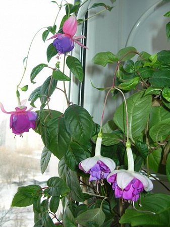 blume, Марина, очень-очень жаль! Твои фуксии были для меня образцом для подражания Я тоже каждый год теряю несколько растений, но у меня их вообще не много. Прошлым летом из 16 сортов отошли в мир иной десять (особенно жалко Сесиль и старушку Фей), зато 6 оставшихся перезимовали на ура (ттт). Я побоялась их стричь на зиму или в холодный подвал опускать - у меня с этим всегда проблемы. Так они простояли дома на окне аж с 1 октября. И цвели всю зиму. Может, это плохо, но зато все живы. Вот этой стороной, что на фото, стойка была повернута к холодному стеклу, там внизу некоторые листья даже примерзли .