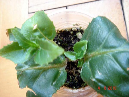 Вчера сажала черенки и вот обнаружила корешок еще и на листике. Я читала, что листьями тоже размножают, но, наверное. долго?